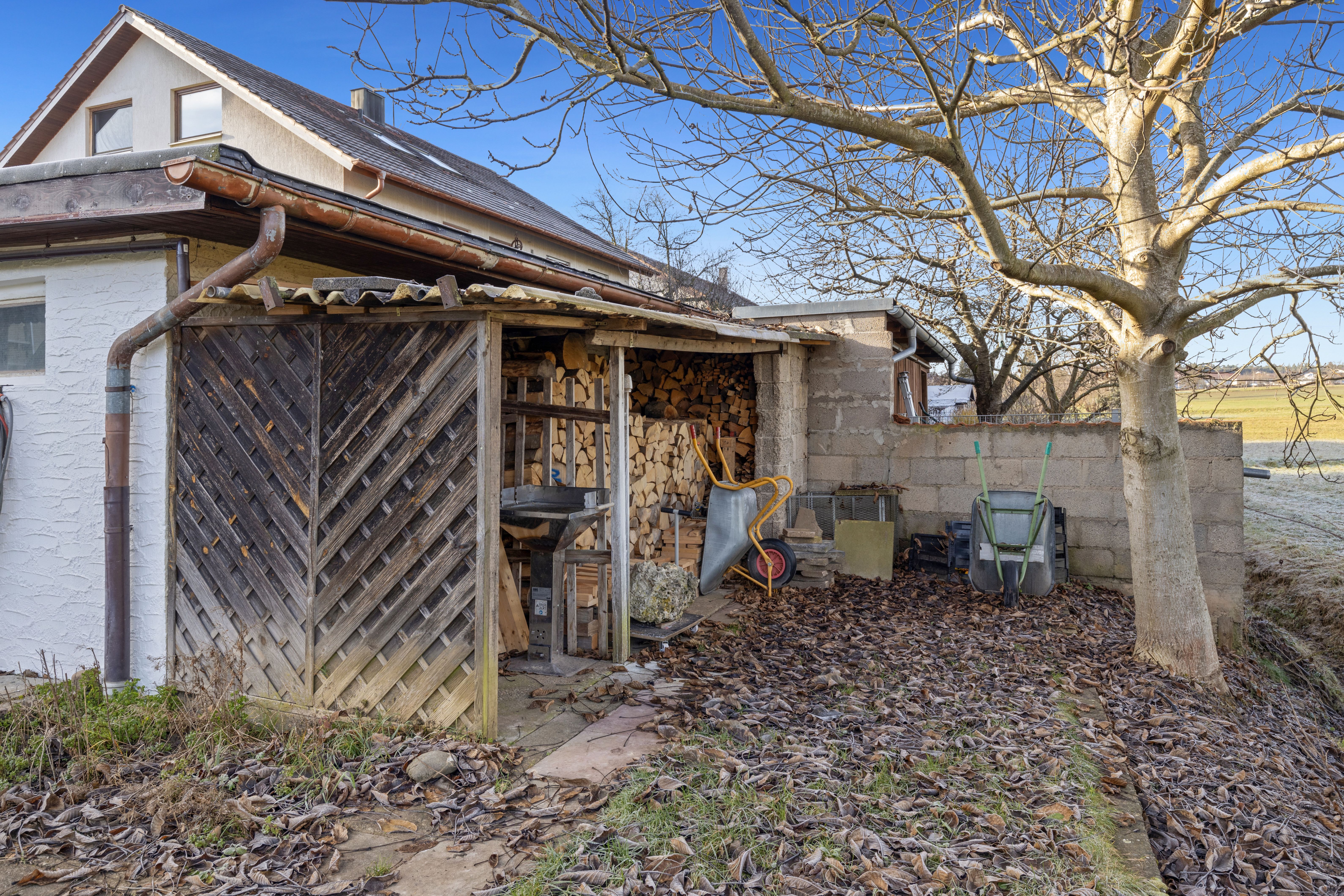 • Garage und Geräteschuppen: 33 m² Fläche mit Platz für Fahrzeuge und Geräte.