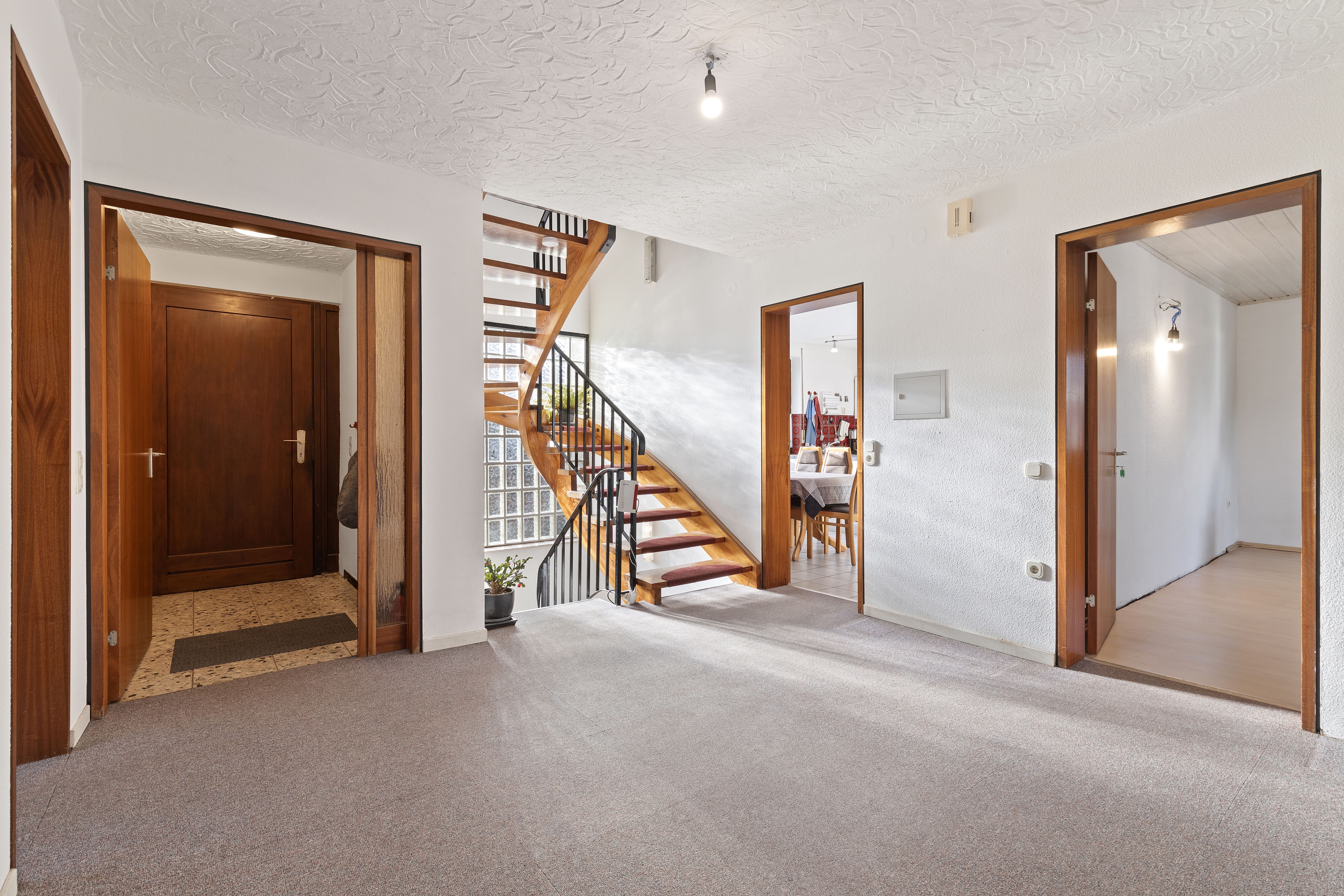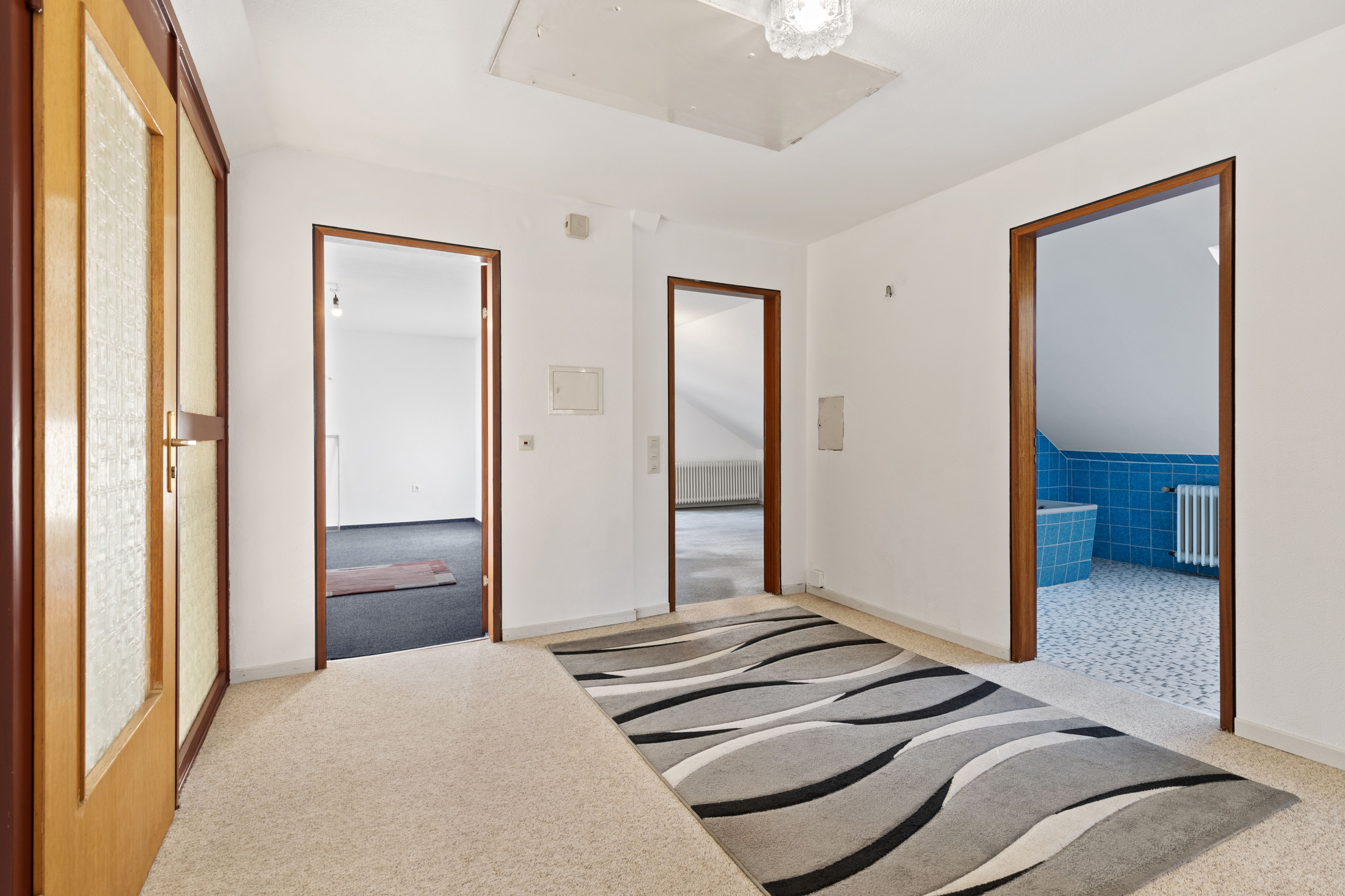 Das Haus wurde 1972 in solider Massivbauweise errichtet und 1976 um eine große Garage mit Geräteraum sowie den Dachgeschossausbau erweitert. Dank der durchdachten Raumaufteilung eignet sich die Immobilie ideal für Familien, Paare mit Platzbedarf oder Mehrgenerationenwohnen. Eine Aufteilung in zwei separate Wohneinheiten ist baulich möglich.