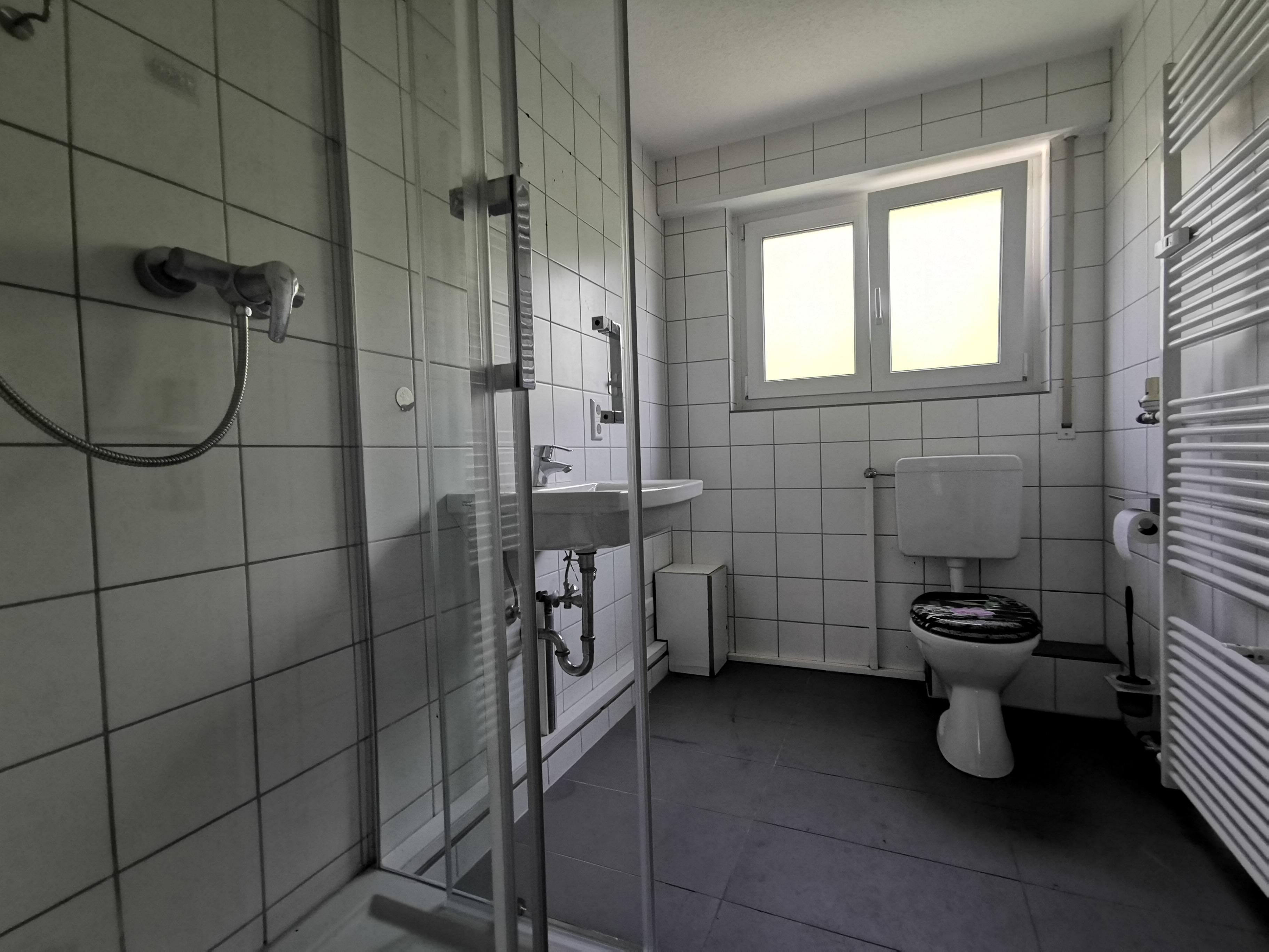– Ein Tageslichtbadzimmer mit Dusche und WC