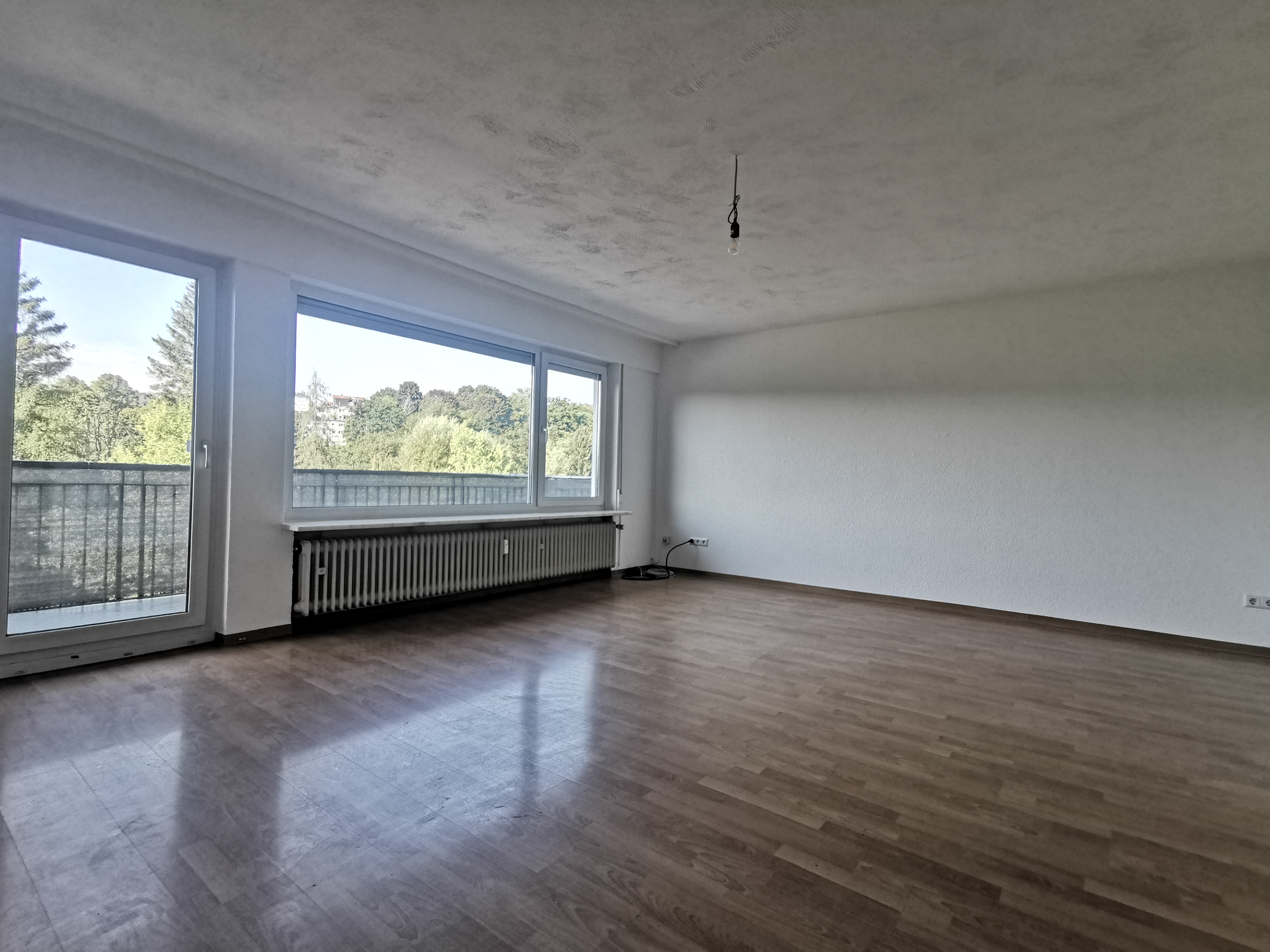 Die Zimmer sind sehr geräumig. Besonders hervorzuheben ist der Balkon mit einer Markise, der einen schönen Blick ins Grüne ermöglicht. Eine nagelneue Einbauküche rundet das Angebot ab.